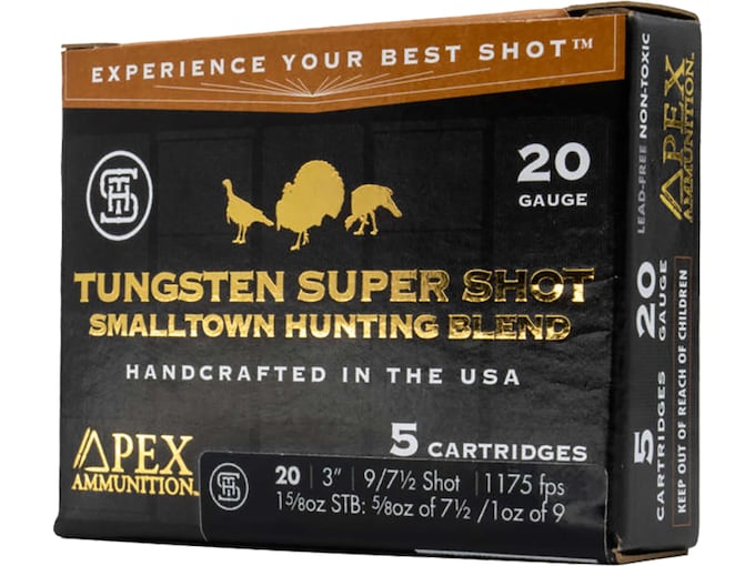 Be the first to review “Apex Ammunition Turkey TSS Smalltown Hunting Blend 20 Gauge Ammo 3″ #7-1/2 and #9 Tungsten Shot 1-5/8 oz Box of 5”