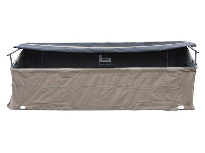 Superior as a boat blind. ?Unparalleled portability and convenience as a shore blind. Revolutionary as a combo! The Banded Axe Combo Boat/Shore Blind is constructed of a heavy duty square-tubed steel frame and features an easy up and down leg system for 10 second set-up and take-downs. ?The leg system?s ?pop-up? design allows for a quick set-up into a roomy, well concealed, weather protected blind or folds down compact in seconds for boating, trailering, or hauling to the spot. Hunters and retriever handlers will also enjoy the convenient in-and-out door that allows easy entry and exit access without having to drop the blind down. ?The Axe Combo Boat/Shore Blind exterior is fabricated with a heavy-duty 600D cover to block out the elements along with integrated concealment straps to add natural vegetation. ?We also suggest adding the Axe Blind Camo Skin (sold separately in Timber and Cattail colors) for an amazing 3-D leaf-like foliage and ultimate camouflaging.For use on a boat:? Assemble the Axe Combo Blind and place it on any boat suitable for hunting.? Wherever the blind contacts the boat, most likely on a bench seat and/or bow deck, simply secure the frame with provided hardware (we recommend four anchor points).? Next, attach Axe Blind Camo Skins (sold separately in Timber and Cattail colors).? In less than one hour after opening the Axe Combo Boat/Shore Blind?s box, you will be ready to hunt.Tip From the boat-hunting gurus of New Madrid, Missouri, regardless of boat size, choose the smaller ?regular? size blind unless it simply will not work in your boat.? A smaller blind will allow your camo netting to drape to your boat?s gunnel at greater angles and more effectively eliminate the shadows that expose your presence.?? This will help to eliminate a ?boxy? unnatural appearance and help the blind blend in with the natural environment more effectively.For use as a shore blind: Assemble the Axe Combo Boat/Shore Blind and install the Axe Blind Leg Kit (sold separately).? Next, attach Axe Blind Camo Skins (sold separately in Timber and Cattail colors).?? The Axe Blind Camo Skins can be used with natural vegetation which can be easily affixed to the concealment straps attached to the blind?s 600D exterior cover.? Simply carry the Axe Combo Blind to your hunting location, secure the blind?s legs into the ground and you are ready to hunt.?FeaturesEasy up and down leg system for 10 second set up and take downQuick slide top cover for optimal overhead concealment and easy shootingHeavy-duty 600D weather and wind resistant cover Adjustable shooting and viewing areaIn-and-out door provides easy entry and exit for dogs and huntersConcealment straps for adding natural vegetationCan be removed quickly and easily from boatInside boat frame designFolds down flat to make boating and towing effortlessRegular size: 44? x 9? ? Weight: 62 lbsLarge Size: 48? x 11? ? Weight: 68 lbs
