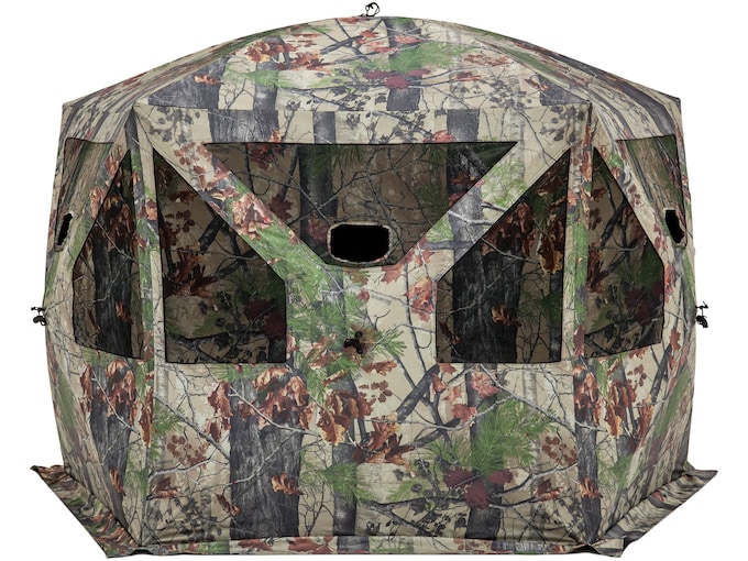 This blind has a huge interior. The 5-sided shape of the Pentagon allows for a comfortable group hunt with a footprint of 41.5 square feet, which is 70% greater than a comparable 4-sided blind. The shape of the Pentagon also creates unrivaled viewing from the blind with panoramic windows. The Pentagon is equipped with a durable framework with thicker, stiffer poles and strong hubs. The windows dip low for easy sight lines while seated and the middle windows have shoot-through holes to provide multiple shooting options.FeaturesPanoramic windows create unrivaled sight linesThe shape of the Pentagon creates 70% more room and sets up just as easyNoise-free, zipperless windowsDurable framework with thicker, stiffer poles and strong hubsReplaceable, shoot-through, mesh camo windows for broadhead use and three ports for gun huntingPeek windows on the back two walls of the blind