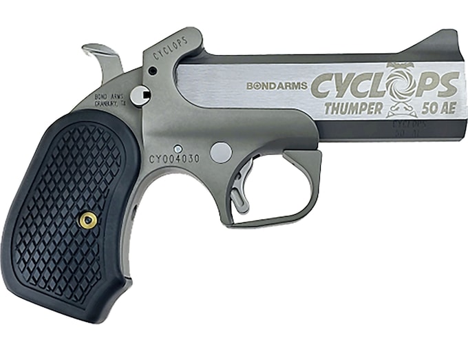 First time buying a gun online?Learn everything you need to make an informed purchase in our Definitive Guide for Buying Guns Online.Read MoreWhen you fire this cannon, you’ll understand why they nicknamed it “Thumper”! The Bond Arms Cyclops Thumper Pistol in .50AE is the newest evolution in big bore handguns by Bond Arms. Featuring a 4.25″ single bore barrel, the Rough & Tumble finish, and B6 grips, “Thumper” is ready to rock! Made In United States of AmericaWARNING: Cancer and Reproductive Harm – www.P65Warnings.ca.gov.