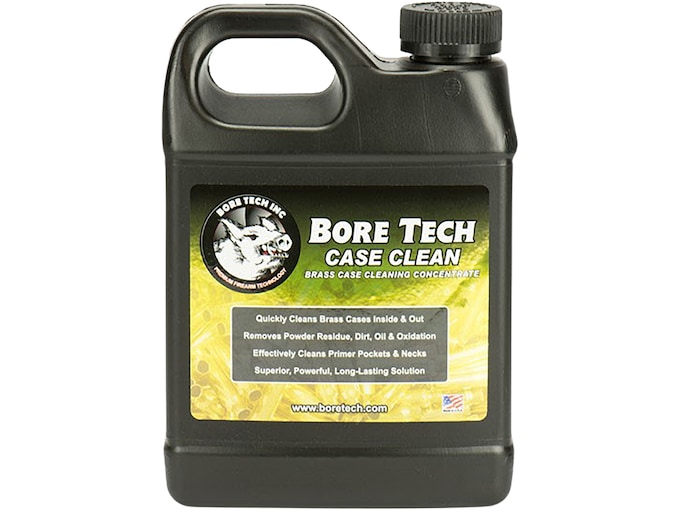 Bore Tech?Case Clean?is the premier, state of the art brass case cleaning concentrate that easily outperforms the competition. The innovative formula is 100% ammonia free and will not etch or make cases brittle. It is odor free and biodegradable. Formulated for use in both ultrasonic cleaners and rotary case tumblers, Case Clean drastically reduces cycle times and completely cleans cases inside and out including primer pockets.Case Clean?s proprietary formulation utilizes a strategic blend of chemical surfactants that quickly loosens and releases carbon deposits, primer residues, oils, waxes, dirt and debris from the case?s surface. This translates into perfectly clean cases inside and out. Dirty primer pockets and necks are no match for this state of the art cleaner and come out perfectly clean and pristine every time.In addition, Case Clean contains an oxidation preventative, which shields the cleaned cases from tarnishing and prolongs the brightened finish. For a mirror-like finish, quickly polish cases in a media tumbler.You will be amazed at how quickly and effectively Case Clean performs.? Made In United States of America