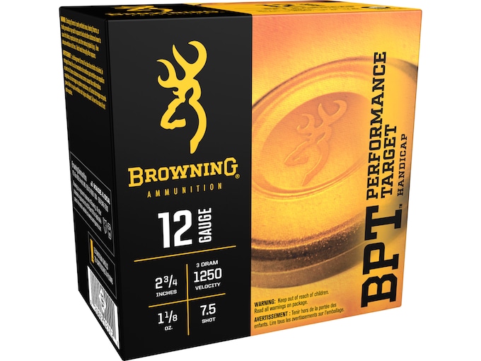 FeaturesHigh Antimony shotReduced deformation at the targetTight, consistent patterns?A global leader in offering quality and innovative firearms, Browning now introduces a new, full-line of superior performance ammunition for hunting, personal defense and target shooting. Browning and Winchester developed this full line of ammunition products under the Browning brand. The Browning Ammunition portfolio includes popular ammunition offerings in rifle, shotgun, handgun and rimfire, featuring advanced technologies for hunters and shooters.?BPT Performance Target utilizes premium, hard shot to help deliver tight patterns and maximum target breaking energy. The smooth hull allows for a sleek profile and smooth ejection. Made In United States of AmericaWARNING: This product can expose you to Lead, which is known to the State of California to cause cancer and birth defects or other reproductive harm. For more information go to – www.P65Warnings.ca.gov.