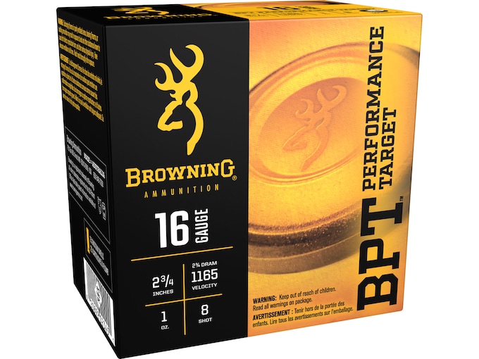 FeaturesHigh Antimony shotReduced deformation at the targetTight, consistent patterns?A global leader in offering quality and innovative firearms, Browning now introduces a new, full-line of superior performance ammunition for hunting, personal defense and target shooting. Browning and Winchester developed this full line of ammunition products under the Browning brand. The Browning Ammunition portfolio includes popular ammunition offerings in rifle, shotgun, handgun and rimfire, featuring advanced technologies for hunters and shooters.?BPT Performance Target utilizes premium, hard shot to help deliver tight patterns and maximum target breaking energy. The smooth hull allows for a sleek profile and smooth ejection.WARNING: This product can expose you to Lead, which is known to the State of California to cause cancer and birth defects or other reproductive harm. For more information go to – www.P65Warnings.ca.gov.