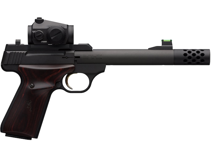 First time buying a gun online?Learn everything you need to make an informed purchase in our Definitive Guide for Buying Guns Online.Read MoreFrom the machined-from-billet precision alloy frame to the threaded muzzle brake on that attaches on 1/2″-28 suppressor ready threads, the Browning?Buck Mark is made in the good ol? US of A. Straight from the box,?these accurate, reliable rimfires are ready to make their mark on the range or in competition.?This model includes a Vortex? Crossfire red dot sight, perfect for faster target acquisition and accuracy. The low red dot mount allows the sights to co-witness through the red dot sight.?Co-witnessed sights means that the iron sights and red dot point of aim are in alignment, giving you backup sights should the red dot fail. This is useful if the battery in the red dot gives out or the red dot fails for another reason, and also if you remove the red dot it can quickly be re-zeroed using the iron sights without sighting-in again.FeaturesVortex Crossfire Red Dot Sight with co-witness sights includedMatte blued bull barrel?1/2″-28 suppressor ready threads, muzzle brake includedLaminated target gripsTRUGLO fiber-optic front sightIncludes pistol rug? Made In United States of AmericaWARNING: Cancer and Reproductive Harm – www.P65Warnings.ca.gov.