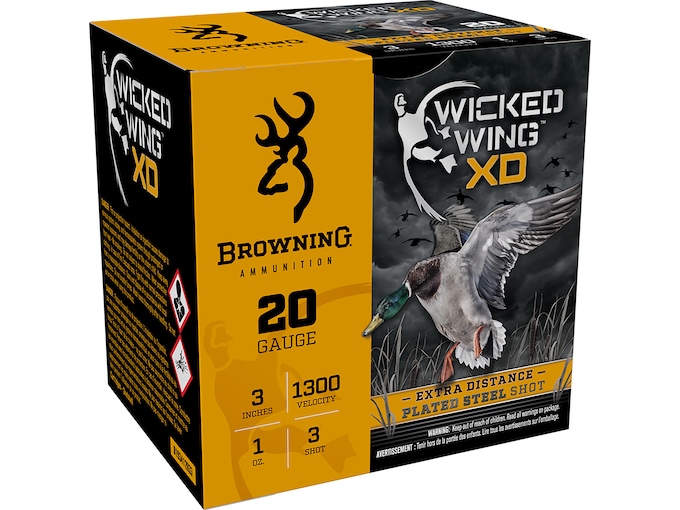 Browning Wicked Wing XD is waterfowl ammunition built to meet the demands of hardcore waterfowlers. It’s made with the roundest, smoothest, most uniform and aerodynamic steel shot available to give you the extra distance needed to bring down high flying birds.FeaturesPREMIUM PLATED ROUND STEEL – Maintains high velocity downrange for deep penetrationHIGH VELOCITY – Reduces lead and allows for maximum downrange energyWICKED WAD – Ensures uniform shot release and tight patterns through various choke designs