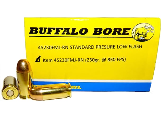 Buffalo Bore loads their ammunition up to maximum SAAMI specifications, which delivers devastating performance on a wide range of game. Please note that this ammunition is not intended for older guns. It is made for modern firearms only, as some of the ammunition could damage older and weaker firearms. Buffalo Bore uses a flash suppressed powder so you won’t become blinded by your own gunfire in the likely event you drop the hammer in a low-light defensive situation. This ammunition is new production, non-corrosive, in boxer primed, reloadable brass cases.?There is a need for high quality, full power, standard pressure, ?ball? (FMJ-RN) ammunition that will feed through the older 45 ACP pistols that exist throughout the world in large numbers. The Colt 1911 has been around since, well, 1911 and others such as the ?Tommy? gun have been around a long time too. Typical JHP/expanding 45 acp ammo has only existed for a few decades and 45 acp pistols designed to feed the flat nose profile of JHP ammo have been around for only about two or three decades. This means that many (maybe millions) of those early 45 ACP firearms need the round nose profile of typical FMJ-RN ammunition to feed reliably 100% of the time. Made In United States of AmericaWARNING: This product can expose you to Lead, which is known to the State of California to cause cancer and birth defects or other reproductive harm. For more information go to – www.P65Warnings.ca.gov.