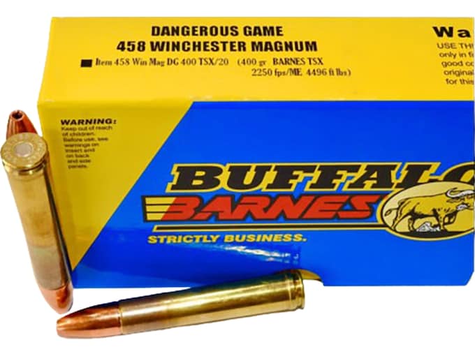 You're viewing: Buffalo Bore Dangerous Game 458 Winchester Magnum Ammo 400 Grain Barnes TSX Solid Hollow Point Lead Free Box of 20 $129.99 $103.99
