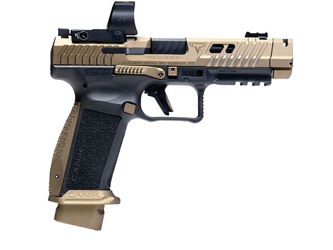 First time buying a gun online?Learn everything you need to make an informed purchase in our Definitive Guide for Buying Guns Online.Read MoreTaran Tactical Innovations and CANiK are proud to partner to bring you the CANik TTI Combat Pistol. Built on a completely new polymer frame designed by Taran Butler, the TTI Combat brings a one-of-a-kind performance package to the CANiK lineup. This sleek design is built by the best, for the best, and includes all the features a world champion like Taran Butler needs for success. Both internally and externally, the TTI Combat delivers. Immediately notable are the following features: The aggressive grip texturing, integrated flared magwell, removable aluminum competition magwell, a ported and spiral-fluted barrel, the first CANiK compensator, a diamond cut and flat-faced 90 degree break trigger, fully adjustable sights, two 18 round magazines with one flush fit TTI base pad and one +3 TTI base pad, a serrated and ambidextrous slide release, three back strap size options, a low profile optics cut for the MECANIK line of optics as well as the Trijicon SRO? and many other optic options. This unique handgun also comes with a custom holster, hard travel case, cleaning kit, tool kit, custom punch, magazine speed loader, trigger lock and three optic plate interfaces. To finish off this collectable package we?ve included a handsome collaboration coin to commemorate our lasting partnership, a partnership that has created a truly Superior Firearm.FeaturesQuick Attach CompensatorSerrated Slide StopHiviz Fiber Optics Front SightAluminum Mag WellFlat TriggerMecanik MO3 Red Dot Included?WARNING: Cancer and Reproductive Harm – www.P65Warnings.ca.gov.