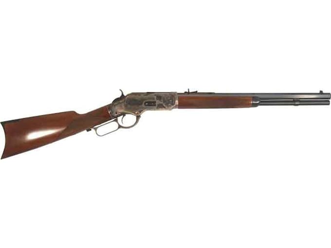 First time buying a gun online?Learn everything you need to make an informed purchase in our Definitive Guide for Buying Guns Online.Read MoreArguably the most famous rifle of the Old West, Winchester’s first centerfire arm was manufactured from 1873-1919, with more than 541,000 turned out before 1900. A frontier favorite since its debut, this lever-action rifle was produced in a number of variations from short Trapper models and carbines to short and extra-long barreled rifles. A few short years after the 1873 rifle was introduced it was often teamed with the famed 1873 Peacemaker and other sixguns that had been chambered for the ’73’s .44-40 (.44WCF), .38-40 (.38 WCF), and .32-20 (.32 WCF) ammunition. The premier choice of the post-1874 Texas Rangers, this slab-sided saddle rifle was also favored by such well-known Westerners as Pat Garrett, William F. Cody, Montana Rancher Granville Stuart, and outlaws Butch Cassidy, Belle Starr and Billy the Kid. Cimarron offers more variations than any other company, from plain to fully engraved with hand-checkered pistol-gripped stocks and in barrel lengths that run from a short 16 inches to a full 30 inches long. No matter the configuration, Cimarron’s 1873 lever guns are considered the best!WARNING: Cancer and Reproductive Harm – www.P65Warnings.ca.gov.