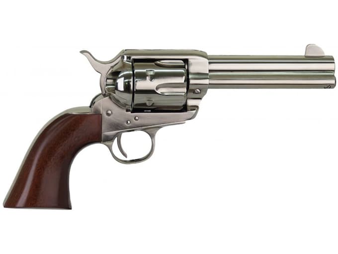 First time buying a gun online?Learn everything you need to make an informed purchase in our Definitive Guide for Buying Guns Online.Read MoreThe 1873 peacemaker-style revolver, originally designed for the U.S. Cavalry, quickly became the archetypical sixgun of the frontier. Available in a number of powerful chamberings in different barrel lengths, besides the “peacemaker,” it was also known by other monikers like “hogleg,” smokewagon,” and “equalizer.” In civilian hands, it quickly earned a reputation as a rugged, hard-hitting, well balanced revolver and outsold all competitors. Men like Wyatt Earp, Bat Masterson, John Selman, the James-Younger gang, the Daltons, the Texas and later the Arizona Rangers, all packed this legendary arm and did their smoky work with it. With the coming of the Silver Screen, the Model P 1873 was reintroduced to an entirely new generation of admirers. In the hands of such Western stars as John Wayne, Roy Rogers, Hopalong Cassidy, Tom Selleck, Clint Eastwood and countless others, this sixgun has earned lasting fame with shooters and Old West fans alike! The Pistolero is a value version of the classic 1873. It features a pre-war style frame and a smooth finished walnut birdshead grip. This is one rock-solid single action six-shooter that is more than capable of withstanding the rigors of hours of practice and competition.WARNING: Cancer and Reproductive Harm – www.P65Warnings.ca.gov.