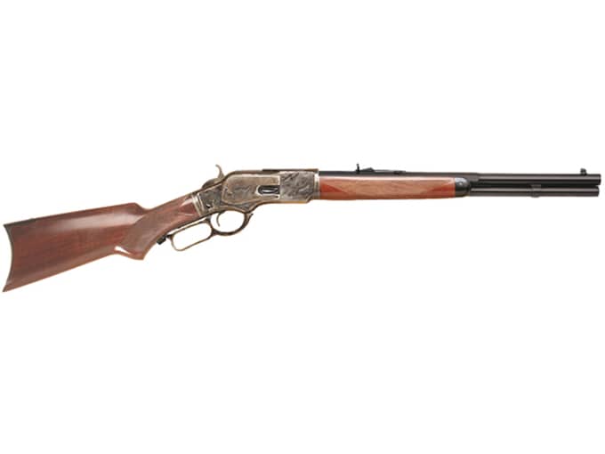 First time buying a gun online?Learn everything you need to make an informed purchase in our Definitive Guide for Buying Guns Online.Read MoreWinchester?s 1873 rifle was the ?Rifle that Won the West.? It was chambered in a new, more powerful cartridge, the .44-40?a .44 caliber bullet, propelled by 40 grains of black powder. However, a factor that really insured the success of the 1873 Winchester rifles was that Colt quickly offered its Peacemaker chambered in .44-40, as well. A cowboy could have both a lever-action rifle and his six shooter, and needed only one cartridge belt for both. Most Texas Rangers and every old West cowboy worth his salt carried 1873 rifles. Chappo, the son of Apache war chief Geronimo, packed an 1873. And Buffalo Bill carried an 1873 lever-action rifle along with a pair of .44-40 Colts in 1876 when he worked as an Army scout. This piece of rifle history is available in a variety of distinctive models including the Texas Brush Popper Rifle. ?Cimarron?s TEXAS BRUSH POPPER? model 1873 rifle is the best-balanced, lightest and quickest lever rifle available today. The 18.5?octagon to round barrel with full length magazine is complimented by either a straight or pistol gripped stock. The TEXAS BRUSH POPPER? model?s light weight makes it a good fit for all ages, without compromising quality, speed, or accuracy. Brought to you by the company that has their finger on the pulse of Cowboy Action Shooting needs, this latest model from Cimarron will be a great addition to any Cowboy Action Shooter?s collection. In fact, this unique little rifle is the result of requests from top Cowboy Action Shooters for the ?ultimate competition lever gun?.WARNING: Cancer and Reproductive Harm – www.P65Warnings.ca.gov.
