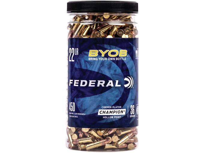 There’s a party at the range, so BYOB. Federal BYOB rimfire buckets and bottles are bulk packs that stack, store and carry easily. They’re loaded with high-quality 17 HMR, 22 LR or 22 WMR rounds that are perfect for a fun day at the range or in the field. Shooters can remove the packs’ lids completely or keep them on to use the easy-pour feature.?FeaturesQuality rimfire loads for the range or huntingPlastic bulk packs stack and store easilyRemoveable lids allow easy access and pouringAccurate, consistent performance at a value price? Made In United States of AmericaWARNING: This product can expose you to Lead, which is known to the State of California to cause cancer and birth defects or other reproductive harm. For more information go to – www.P65Warnings.ca.gov.