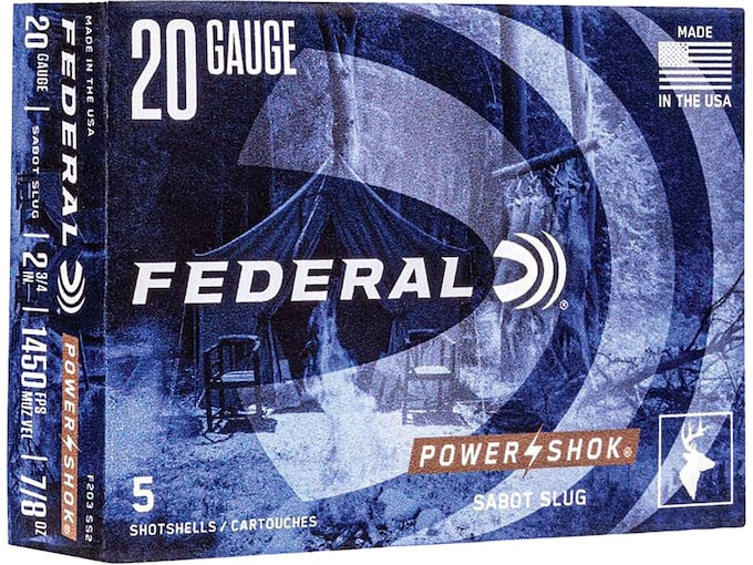 Recommended for use with large and heavy game, Power-Shok slugs provide better shot alignment and harder-hitting performance in the field. Loaded with Federal’s uniquely shaped tapered sabot slug, this ammunition offers maximum penetration and excellent accuracy. Combined with Federal’s reputation for quality and awesome stopping power, this round will give you the results you’ve been looking for.