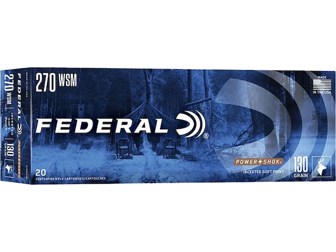 Federal Power-Shok 270 Winchester Short Magnum (WSM) Ammo 130 Grain Jacketed Soft Point Box of 20