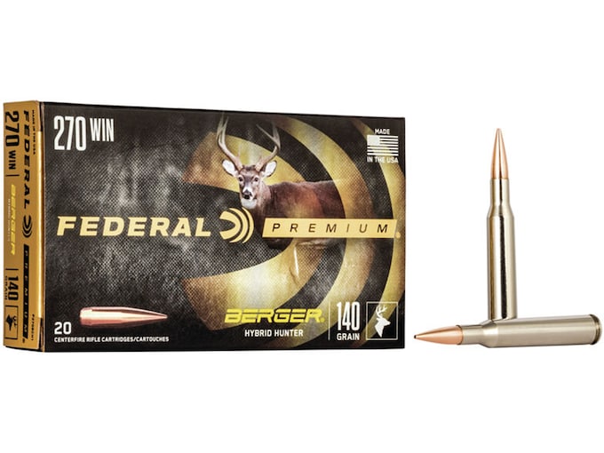 Federal Premium is quality hunting ammunition designed for maximum performance and reliability. Premium hunting bullets are matched with select powders, primers and brass to create a reliable, hard-hitting hunting cartridge. This ammunition is new production, non-corrosive, in boxer primed, reloadable cases. ?Blend the profile of a low-drag match bullet with a traditional hunting projectile design and you’re ready to take on almost anything that walks on four legs. Federal Premium Berger Hybrid Hunter bullet weights have been fine-tuned to provide exceptional accuracy through factory rifles. Ballistic coefficients exceed those of comparable designs thanks to a hybrid nose design that combines tangent and secant ogive features. The bullets are loaded with the finest nickel-plated brass, Gold Medal primers and specially formulated propellant for the best consistency and reliability.?FeaturesHybrid tangent-secant ogive bullet designHigh ballistic coefficientSuperior accuracy across a wide range of factory firearmsLethal and reliable terminal performance on medium and big gameLoaded to tight specifications with Gold Medal primers, nickel-plated brass and specialized propellant? Made In United States of AmericaWARNING: This product can expose you to Lead, which is known to the State of California to cause cancer and birth defects or other reproductive harm. For more information go to – www.P65Warnings.ca.gov.