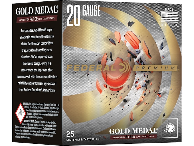 For decades, Federal Gold Medal shotshells have set the standard-and world records-for competitive trap, skeet and sporting clays shooters. Now the industry-leading design is improved with Gold Medal Grand. Gold Medal Grand Paper loads combine Federal Premium’s classic paper hull and brass head with a special design that results in less felt recoil and harder shot for the most serious clay target shooters. FeaturesExclusive Federal Premium paper hull designTwo-piece wad utilizes SoftCell technology to decrease perceived recoil and produce more uniform patterns than one-piece designsBrass head for flawless extraction and cyclingLead shot is engineered for the optimum blend of hardness and density for even patterns and maximum downrange power Made In United States of AmericaWARNING: This product can expose you to Lead, which is known to the State of California to cause cancer and birth defects or other reproductive harm. For more information go to – www.P65Warnings.ca.gov.