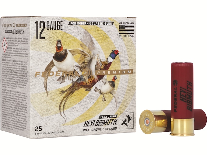 Never compromise performance. Federal Premium HEVI-Bismuth hits both upland birds and waterfowl with the power of 9.6 g/cc density pellets. Sourced from HEVI-Shot, the industry leader in pellet technology, HEVI-Bismuth shot is 22 percent denser than steel, delivering more lethal energy downrange. Launched by the FLITECONTROL FLEX wad, bismuth pellets pattern consistently, and their metallic properties make them safe in both modern and classic shotguns.?FeaturesAt 9.6 g/cc, HEVI-Bismuth pellets are 22 percent denser than steelMore downrange energyHigher pellet counts than comparably performing steelSofter than steel and tungstenRear-deploying FLITECONTROL FLEX wad creates more consistent, efficient patterns in ported and non-ported chokesSafe and effective for use in both classic and modern shotgunsPellets are alloyed and cast in the USA Made In United States of AmericaWARNING: This product can expose you to Lead, which is known to the State of California to cause cancer and birth defects or other reproductive harm. For more information go to – www.P65Warnings.ca.gov.