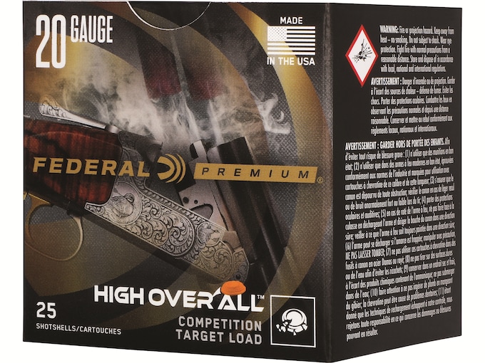 Engineered for the most elite trap, skeet and sporting clays shooters, Federal Premium High Over All Ammunition leaves a trail of shattered targets in its wake and more reloads per shell. Its hard, high-antimony lead payload produces the most consistent patterns, while the solid brass head and tapered, one-piece hull make reloading easier than ever. It’s the ultimate competition load for the world’s best shooters.?FeaturesHard, high-antimony lead pellets resist deformation and deliver more energy downrangeSolid brass headIntegral base wad and tapered, single-piece plastic hull allow reloading with a wider selection of wadsMore reloads per hull Made In United States of AmericaWARNING: This product can expose you to Lead, which is known to the State of California to cause cancer and birth defects or other reproductive harm. For more information go to – www.P65Warnings.ca.gov.