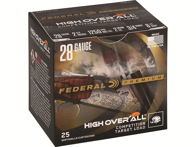 Engineered for the most elite trap, skeet and sporting clays shooters, Federal Premium High Over All Ammunition leaves a trail of shattered targets in its wake and more reloads per shell. Its hard, high-antimony lead payload produces the most consistent patterns, while the solid brass head and tapered, one-piece hull make reloading easier than ever. It’s the ultimate competition load for the world’s best shooters.?FeaturesHard, high-antimony lead pellets resist deformation and deliver more energy downrangeSolid brass headIntegral base wad and tapered, single-piece plastic hull allow reloading with a wider selection of wadsMore reloads per hull Made In United States of AmericaWARNING: This product can expose you to Lead, which is known to the State of California to cause cancer and birth defects or other reproductive harm. For more information go to – www.P65Warnings.ca.gov.