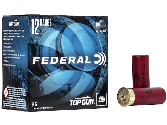 Top Gun Target Loads feature Federal’s Triple Plus wad column and 8 segment crimp. These shotshells also feature a clean burning powder to ensure consistent velocity with each shot. Great for clay targets! Made In United States of AmericaWARNING: This product can expose you to Lead, which is known to the State of California to cause cancer and birth defects or other reproductive harm. For more information go to – www.P65Warnings.ca.gov.