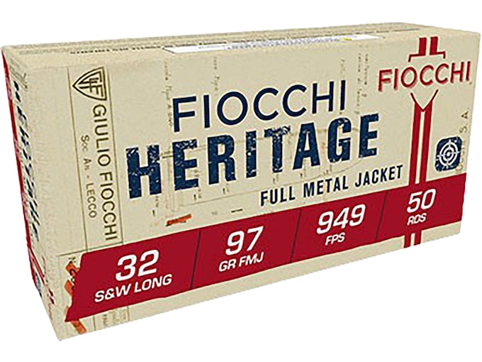 Fiocchi Heritage 32 S&W Long Ammo 97 Grain Full Metal Jacket Box of 50