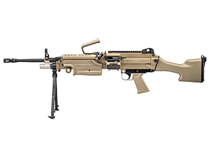 First time buying a gun online?Learn everything you need to make an informed purchase in our Definitive Guide for Buying Guns Online.Read MoreThe FN M249S, a semi-automatic version of the M249 SAW light machine gun, was originally developed by FN Herstal as the FN MINIMI and adopted by the U.S. military in 1988. The rifle features the signature 18.5-inch FN cold hammer-forged, chrome-lined barrel and operates from a closed-bolt position. Chambered in 5.56x45mm NATO, the rifle will accept both magazine and linked ammunition belt and offers a 4.0-6.5 pound trigger pull out of the box.FeaturesSemi-auto replica of the government-issue FN M249 SAWFolding steel bipodFolding carry handleFlip-up feed tray cover and feed mechanismQuick-change barrel capabilityRemovable heat shieldStandard disintegrating link belt-fed