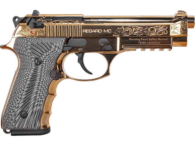 First time buying a gun online?Learn everything you need to make an informed purchase in our Definitive Guide for Buying Guns Online.Read MoreElegance comes to mind when seeing the Girsan Regard MC Deluxe Beretta style pistol with its gold-finished frame and slide, finely engraved with exquisite detail. But the MC Deluxe is more than a pretty face, it?s a performance pistol of forged aluminum with all the internal parts of a tough defensive pistol. Beauty is more than finish deep on this affordable and highly collectable Girsan Regard MC Deluxe.The deluxe is a lightweight pistol just over 2 pounds with plenty of great features. An accessory rail is included to allow for laser sights or flashlights for use at night. As well a luxury case to keep your gun safe and comfortable. Moreover, we?ve added on G10 grips to the deluxe made of fiberglass based epoxy. The G10 grips are strong, durable, and water resistant. They will last you throughout long sessions at the range or anywhere else. In addition, the gun comes with an ambidextrous safety for left and right handed users or for more flexibility. If you?re looking for a sweet pistol to show off then EAA has got you covered. With the Deluxe?s gold shine, abstract explosive grips, and beautiful luxury case, you?ll be turning heads for sure.FeaturesAmbidextrous SafetyEngraved SlideG10 GripsAccessory RailBeretta 92 Style FrameLeather Case Included?WARNING: Cancer and Reproductive Harm – www.P65Warnings.ca.gov.