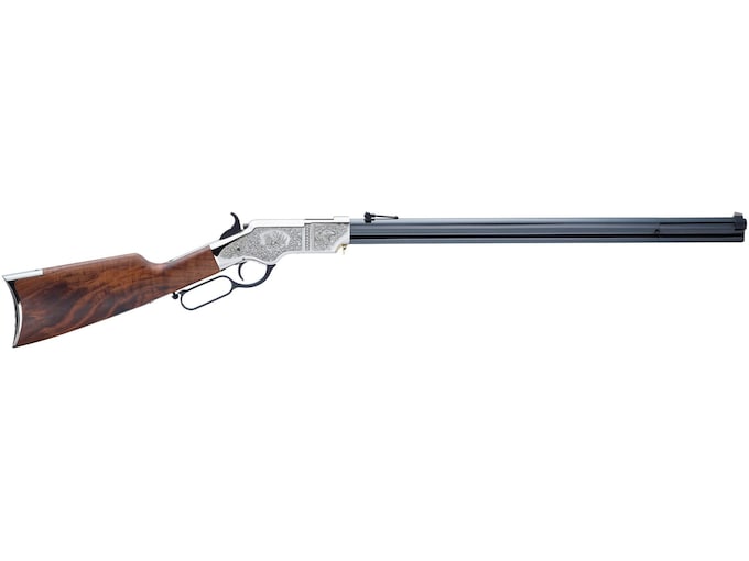 First time buying a gun online?Learn everything you need to make an informed purchase in our Definitive Guide for Buying Guns Online.Read MoreWhen Henry Repeating Arms brought out the first Original Henry rifle as an all-American-made re-introduction of Benjamin Tyler Henry?s classic brass-framed 1860 lever action design, the reception was so positive that they got right to work on an ?iron-framed? version, and that in turn led to two nicely engraved special editions as limited-run One-Of-1,000 offerings, both in brass frames. The first sold out almost immediately. Building on the Original Henry?s specs, the Silver Engraved Deluxe still features a 24.5? blued steel octagonal barrel, a full-length 13-round split magazine with external follower, a rotating barrel collar for front-end loading, a presentation-grade American Walnut stock and a distinctive crescent buttplate with the cleaning rod trapdoor. It also retains the period-correct folding ladder rear sight and ?in-the-white? front blade, but like the first brass-framed offering the caliber has been updated to the more readily available .44-40. It?s the truly magnificent engraving done in a high-luster nickel finish that really sets this functional work of art apart from the rest.This Silver Deluxe Engraved version uses a brass frame, like the first Original, but uses electroless nickel plating on the frame, buttplate, shell carrier, and magazine cartridge follower. The rifle is then finished off with a stunning engraving that covers 90% of the receiver surface. In keeping with the Civil War era that spawned the Original, we commissioned a patriotic theme for the new Silver Deluxe?s deeply detailed engraving pattern in the style of the times.This beauty will be the centerpiece of your lever action collection, and like all Henry special edition heirlooms, it?s a shooter. But don?t wait too long; there’s only 1,000 being made, and they?ll go in a hurry.FeaturesFancy American Walnut stockEngraved receiverLimited to 1000 Made In United States of AmericaWARNING: Cancer and Reproductive Harm – www.P65Warnings.ca.gov.