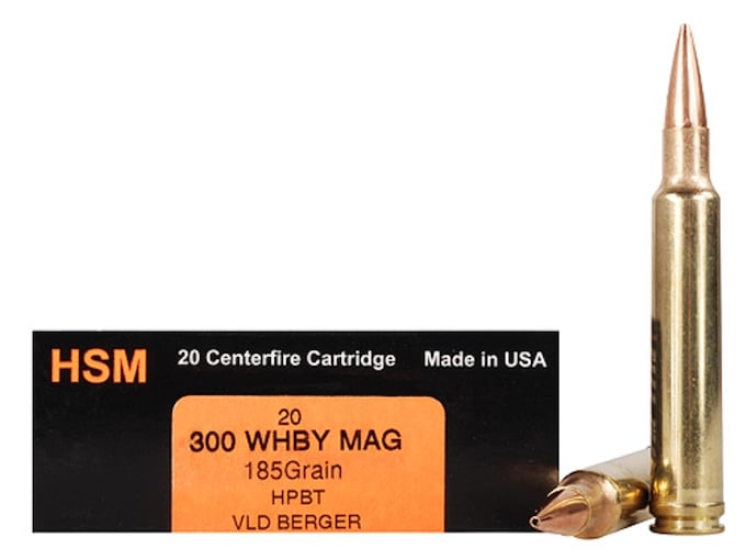 HSM Trophy Gold 300 Weatherby Magnum Ammo 185 Grain Berger Hunting VLD (Very Low Drag) Jacketed Hollow Point Box of 20
