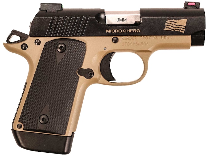 Kimber Micro 9 Hero 9mm Luger Pistol 3.15″ Barrel 7+1 Round Black Slide Black Grip Desert Tan Frame