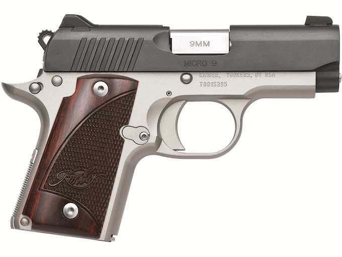 First time buying a gun online?Learn everything you need to make an informed purchase in our Definitive Guide for Buying Guns Online.Read MoreThe easily concealed Kimber Micro 9 Two Tone features mild recoil, smooth trigger pull and the intuitive operation of a 1911. The Micro 9 Group of pistols put legendary Kimber dependability into a small 1911-like platform. The 9mm power and simple operation make these pistols an ideal choice for many shooters. A wide variety of models are available, providing a selection of features that meet virtually any need. Collectively, they are among the finest ultra-compact 9mm hammer-fired pistols anyone can carry.?Micro barrels are machined from stainless steel for superior resistance to moisture, and all Micro frames are shaped from the finest aluminum for integrity and strength. In many respects a miniature 1911, the Micro offers important design advantages like a single-action trigger with a short, smooth pull that ensures accuracy and builds confidence. Its thumb safety, slide stop and magazine release are pure 1911 as well. Standard features include a lowered and flared ejection port for flawless ejection and a beveled magazine well for fast, positive loading. Sights are steel ? not plastic ? and mounted in machined dovetails for additional integrity. Each Micro includes an extended 7-round magazine; flush-fitting 6-round magazines are available. Well-suited for all shooters, including those with small hands and those who insist on mild recoil, Micro provides power for concealed carry, home protection and many other applications in our smallest platform yet. Best of all, they offer unequaled Kimber quality, dependability and performance. Made In United States of America