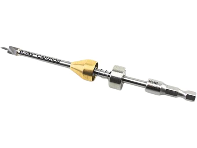 Hand Loader! Are you looking for improved accuracy? Accuracy demands consistency and precision in every operation and component used in hand loading. The brass case is very important and sometimes important details are overlooked–such as the Primer Pocket and Flash Hole inside of the case.In cartridge manufacturing, the flash hole is “punched” into the brass. While this is the least expensive method, it has many shortcomings and inconsistencies. The flash holes, therefore, are of different sizes and shapes. The most detrimental to accuracy are the irregular “breakouts” and “burrs” on the inside. This will cause “shot-to-shot” differences in Primer “Flame Fronts”, causing inconsistent pressure/velocity and, thereby, loss of accuracy. Bench Rest Shooters have been uniforming flash holes since 1969. With the Precision K & M UNIFORMER tools, you can realize the potential accuracy by simultaneously reaming, de-burring and chamfering the inside of the flash hole. The unique features of the K&M Tools provide uniformity with a pre-set depth stop, (Gauge), surrounding the tool steel cutter, therefore, does not require the case to be trimmed to a precise or consistent length. Operation is controlled in reference to inside-bottom of case, not case mouth. The K&M Premium Flash Hole Uniformer for Powered Operation configuration features a thrust bearing embedded in the centering cone in which a spring maintains pressure on the cone to keep it engaged in the case mouth. Simply adjust the clamp collar up or down the tool shaft to apply a light spring pressure against the centering cone. Use the 1/4″ hex drive stem in any cordless screw driver or remove it so the tool can be used in prep centers with an 8-32 thread. Features:Deburrs and chamfers flash holes to improve consistent primer ignitionAids in improved handload accuracyPre-set depth stopReferences on inside-bottom of case not case mouth. Notes:Flash hole size:.082 for “standard” flash holes.059 or .062 for Lapua 1.5mm flash holes (.062 is recommended for consistent flash hole sizing)Minimum caliber is .22 based on Cutter Body DiameterMaximum caliber based on Cone Diameter to register on case mouth Made In United States of AmericaWARNING: Cancer and Reproductive Harm – www.P65Warnings.ca.gov.