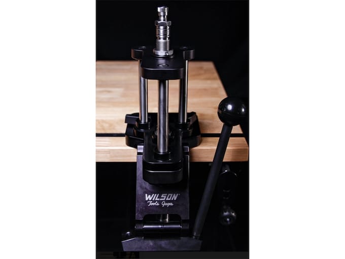The L.E. Wilson Single Stage Press has been in development since early 2023, testing and modifying over the course of several months. L.E. Wilson is proud to say the press was all designed, manufactured and engineered in-house. One of the key accomplishments is that they have taken the “slop” out of the lower part of the threaded press by implementing a H-Bar Pivot Plate, which is very difficult to implement and requires achieving very tight tolerances between the other components. Engineers then implemented a 3-rod design to remove “slop” out of the upper portion of the press. All three plates are aligned to provide smooth operation, which this sets this product apart from the others on the market.?FeaturesThree rod design keeps press in complete alignment.Hard anodized finish.Handle will swap from right to left hand just by unthreading handle and threading into other side.Primers collect in cavity in press rod.Positive stop machined into base of press to help square to benchtop.Four large mounting holes to attach firmly to bench.Press rod is guided by liner bearing for a smooth action on press during sizing/seating.Will accept most standard shell holders and works with most 7/8 die brands. Made In United States of America