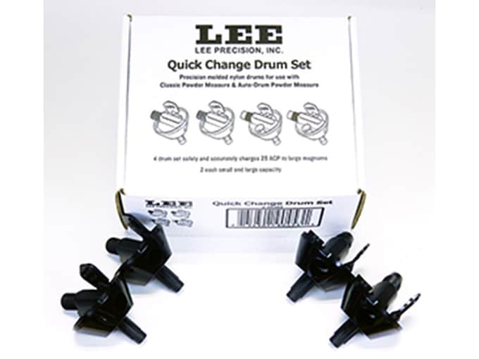 Quick Change Drum Set can be used in conjunction with the Deluxe Perfect Powder Measure, Auto Drum Powder Measure and the now discontinued Classic Powder Measure. All drums are infinitely adjustable within range. No tools are required for adjustment. A graduated adjustment key iincluded with each drum. Each turn of the adjusting screw is .1cc or about 1 grain of powder. Each key is marked with .01cc graduations allowing easy 1/10 grain powder adjustments. Quickly set your charge, and mark it and the powder type on the flat of the drum set for easy reference for future reloading.?Features four precision molded nylon drums:(2) small drums for charging 25 ACP to 223 Remington (2) large drums for charging the 223 Remington to Large Magnums. Also include an insert to allow reduced capacity charging similar to smaller drum.? Made In United States of America