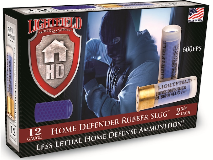 The Home Defender Rubber Slug load is intended for serious defensive use. The Rubber Slug is the most energetic of the Home Defender loads. Its rigid design will not deform on impact . The Rubber Slug will hold its velocity and energy over greater distances and has greater penetration potential. Though the Home Defender line of products is geared towards ?room distance? encounters, the Home Defender Rubber Slug load is effective at much greater distances.?Some level of injury should be expected and can range from serious injury or death to painful welts or bruising. Results can vary based on the weapon used, distance to target, clothing, body weight and part of the body hit.?For Cylinder or Improved Cylinder bores ONLY.WARNING: This product can expose you to Lead, which is known to the State of California to cause cancer and birth defects or other reproductive harm. For more information go to – www.P65Warnings.ca.gov.