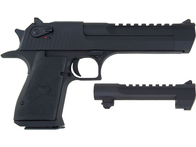 First time buying a gun online?Learn everything you need to make an informed purchase in our Definitive Guide for Buying Guns Online.Read MoreThe Desert Eagle Mark XIX, Model Number DE50WB6, features a .50 AE caliber with a 6″ barrel, O/A length of 10.75″ a slide width of 1.25″ and a height of 6.25″. The steel-framed pistol is manufactured in Israel and has a black oxide finish with a black barrel, and a combat-type fixed sight. The new combo caliber package includes a .44 Magnum caliber barrel in a black finish and a .44 Magnum magazine. This is the first time that Magnum Research has offered a combo caliber package featuring the .50 AE and the .44 Magnum calibers in one gun case. Also includes one 7-round .50 AE caliber magazine.FeaturesBlack finishIncludes a 6″ 44Mag barrel and magazineFull Weaver style accessory railCombat type fixed sightsStandard ambidextrous safety? Made In IsraelWARNING: Cancer and Reproductive Harm – www.P65Warnings.ca.gov.