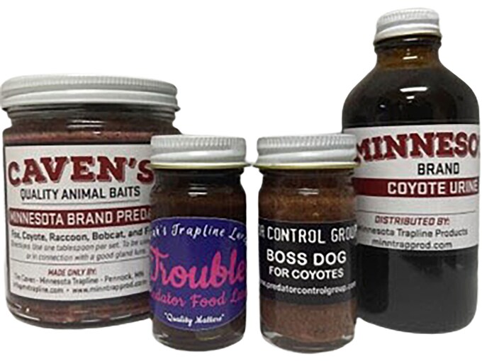 Supreme quality lures, baits, and urines formulated with only the highest quality ingredients. Made by trappers for trappers and proven to attract even the most cunning of predators. Crafted to mimic natural animal smells and behaviors, making it irresistible to predators.FeaturesMinnesota Brand Coyote UrinePredator Control Groups’s Boss Dog for Coyotes”Trouble” Predator Food LureCaven’s Minnesota Brand Predator Lure Made In United States of AmericaWARNING: Cancer and Reproductive Harm – www.P65Warnings.ca.gov.