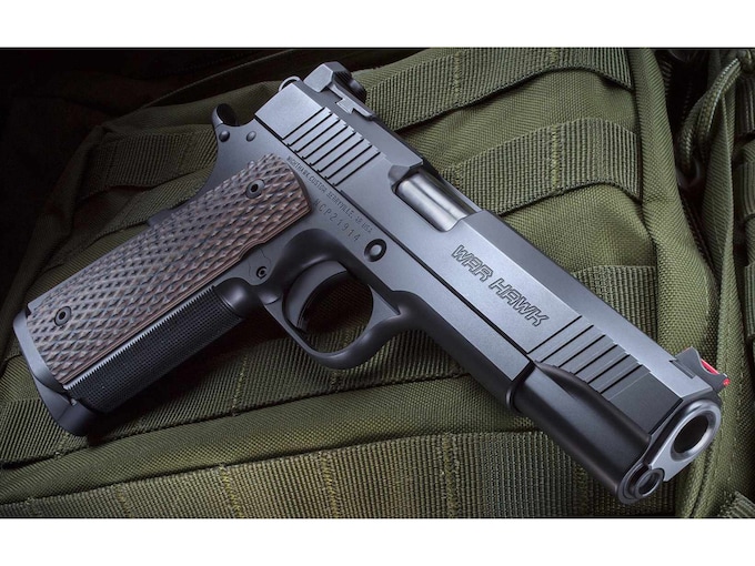 First time buying a gun online?Learn everything you need to make an informed purchase in our Definitive Guide for Buying Guns Online.Read MoreThe War Hawk has a unique tri-cut slide top with top serrations that come to an arrow point to make it stand out among other 1911s. Among other improvements, this model includes the Jardine Tactical Hook rear sight as a standard feature. Additionally, the EVERLAST Recoil System allows shooters to go at least 5,000 rounds without a single recoil spring change. The aggressive cocking serrations provide a sure grip when racking the slide, and the one-piece magwell/mainspring housing allows quick and sure reloading. This pistol also includes a crowned barrel with a beveled and recessed slide stop as standard features.?FeaturesForged government size frame and 5″ barrel Tri-cut slide Serrated arrow style slide top Heavy bevel on bottom of slide Coarse front and rear cocking serrations Nighthawk Custom/Marvel EVERLAST Recoil System Open faced recoil spring plug One-piece magwell/mainspring housing Solid black Jardine rear sight and red fiber optic front sight G10 hyena brown Diamond Back Grip with super scoop 25 lines per inch checkered front strap and mainspring housing 40 lines per inch serrated rear of slide Shortened slide stop and beveled frame Crowned barrel flush with bushing Lightweight aluminum solid curved trigger Completely dehorned for comfortable carry Ultra hi-cut front strap Made In United States of AmericaWARNING: Cancer and Reproductive Harm – www.P65Warnings.ca.gov.