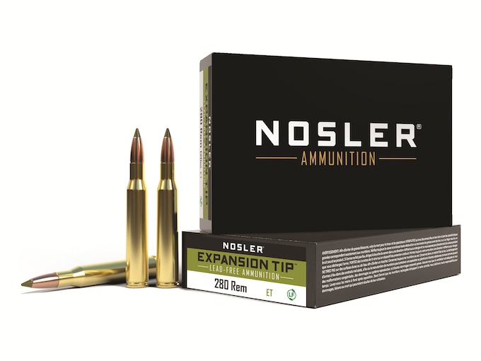 Nosler E-Tip 280 Remington Ammo 140 Grain Nosler Expansion Tip (E-Tip) Polymer Tip Lead Free Box of 20
