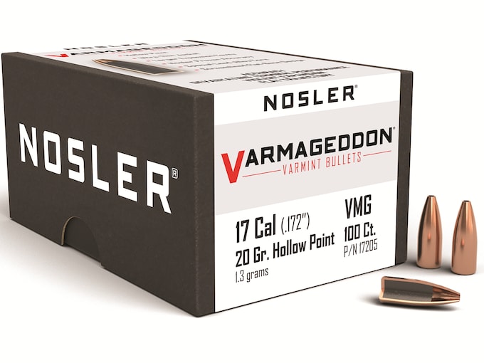Nosler Varmageddon 17 Caliber (172 Diameter) Bullets 20 Grain Jacketed Hollow Point Box of 100- Blemished