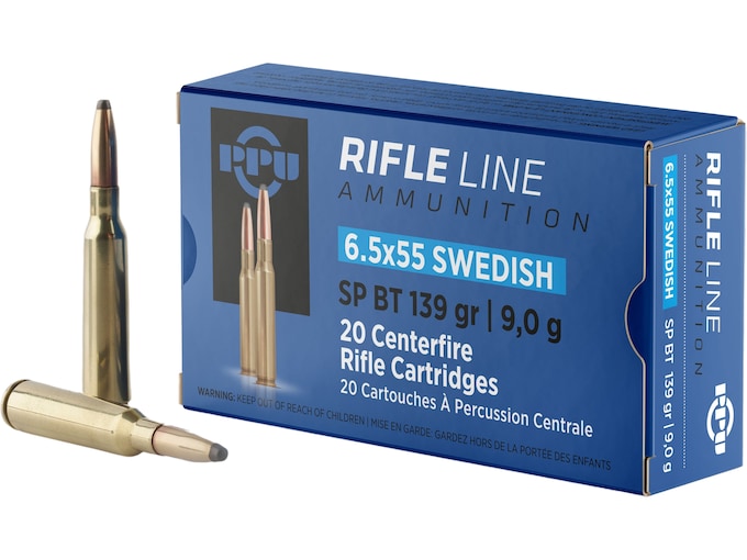 PPU 6.5x55mm Swedish Mauser Ammo 139 Grain Jacketed Soft Point Box of 20