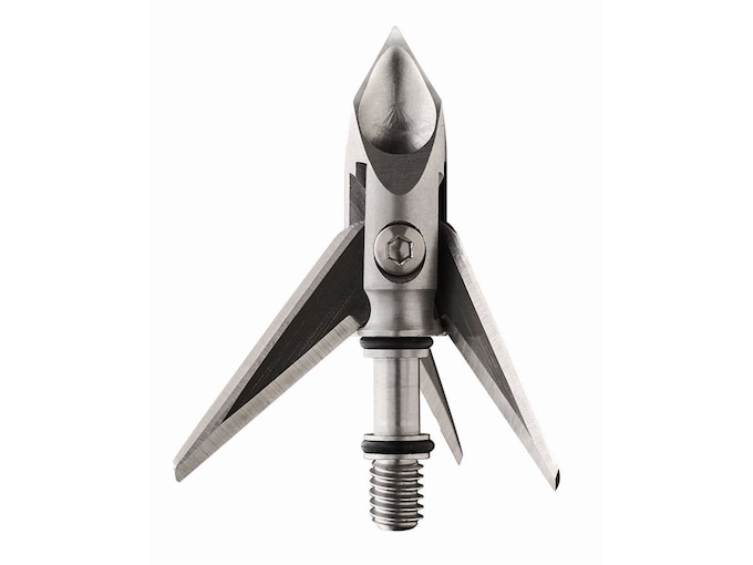 Patented deep lobes in cutting tip create an air foil that drafts wind over the blades and disallows windplaning. Once in the animal, the lobes create a hydrofoil forcing body mass outward and thus removing friction down the arrow shaft; this results in the deepest penetration on the market. Offset and Stealth blade design. The blades are .032? thick for strength and have no blade windows. The replacement blades are sharpened front and rear to create a backcut if the head does not pass through the animal. It will cut its way back out! One piece stainless steel body construction.