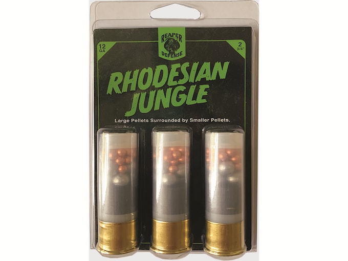 These?Reaper Defense 12 gauge Rhodesian Jungle?rounds contain both large pellets and small pellets, creating a staggering combination of heavy-hitting projectiles and smaller ones to pepper the target. This composition of pellet sizes means these are great for defensive roles and can stop a wide variety of threats including home invaders, large animals, and other dangerous predators. Made In United States of AmericaWARNING: This product can expose you to Lead, which is known to the State of California to cause cancer and birth defects or other reproductive harm. For more information go to – www.P65Warnings.ca.gov.