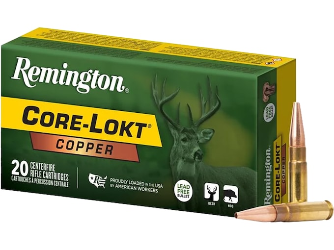 Deadly Core-Lokt Copper. Dependable expansion, proven weight retention, and drop-dead accuracy. The performance you?ve come to know and expect from Core-Lokt, now guaranteed with a lead-free bullet. Rigid construction from a high-strength pure copper projectile ensures Core-Lokt Copper?s monometal bullet dispatches big game with true Deadly Mushroom performance. This ammunition is new production, non-corrosive, in boxer primed, reloadable brass cases.?FeaturesACCURATE MONOMETAL BULLET? All-copper projectile made from high-strength copper like classic Core-Lokt’s proven jacketCORE-LOKT PERFORMANCE ? Precision hollow point for consistent deadly expansion and performance on-game, across a wild range of velocitiesTRUSTED QUALITY COMPONENTS ? Reliable brass, propellants, and precise loading techniques for consistency shot-after -shotLEAD-FREE PRIMER ? Lead-free primer provides consistent ignition? Made In United States of AmericaWARNING: This product can expose you to Lead, which is known to the State of California to cause cancer and birth defects or other reproductive harm. For more information go to – www.P65Warnings.ca.gov.
