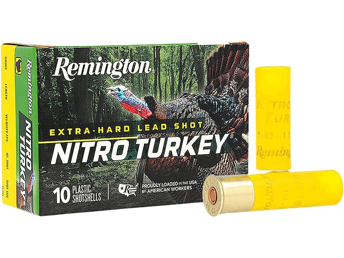 Remington Nitro Turkey loads use exclusive Nitro Mag extra hard lead shot that delivers the same high performance of copper plated shot at an incredible price. Loaded using a special blend of powders and the famous Remington Power Piston one-piece wad. Nitro Turkey Magnums pattern as well as copper plated and buffered loads available. In fact, 80% patterns are common with the use of super full chokes.