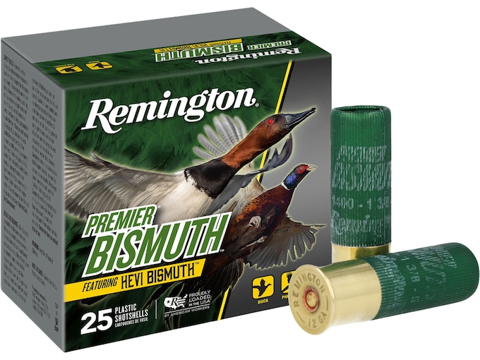 Remington Premier Hevi Bismuth Ammunition ets you hit harder and farther, with any shotgun on any flying feathered game. Out-performing steel, HEVI BISMUTH?s dense shot flies farther with more retained energy, giving you deadly performance at greater distances. HEVI BISMUTH’s density makes smaller shot sizes viable, resulting in more pellets per payload, more shot on target, and more mornings hitting your bag limit. Rolling prairie or flooded timber, Premier Bismuth is equally effective on upland game and waterfowl, all at a price point that won?t break the bank.?FeaturesHits just like lead with 44% more downrange energySafe to shoot in all barrels including vintage shotgunsHevi BismuthAll-season load for waterfowl or upland hunts? Made In United States of AmericaWARNING: This product can expose you to Lead, which is known to the State of California to cause cancer and birth defects or other reproductive harm. For more information go to – www.P65Warnings.ca.gov.