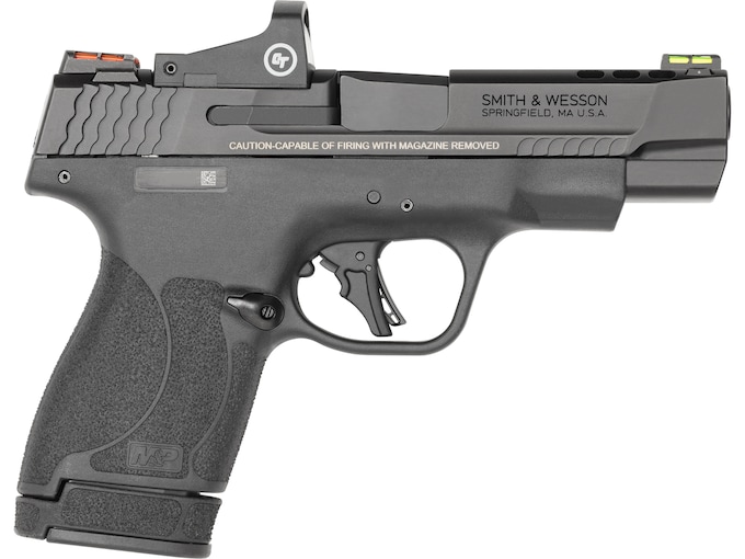 First time buying a gun online?Learn everything you need to make an informed purchase in our Definitive Guide for Buying Guns Online.Read MoreDesigned for concealed carry, the M&P Shield Plus is the most advanced M&P Shield pistol to date, featuring a magazine capacity up to 13 rounds in a slim, micro-compact frame. Packed with popular features such as a flat-face trigger, large capacity magazine, optics cuts, and more, the M&P Shield Plus product line has been designed to meet the needs of today?s firearm consumer.?The M&P Shield Plus features the hallmark 18-degree grip angle of the M&P pistol series for a natural point of aim, helping to better manage recoil and get back on target quickly. Standard M&P Shield Plus pistols include a variety of features, including a flat-face trigger, optimized grip texture designed for concealed carry, and two magazines: an extended 13+1 round magazine and a flush-fit 10+1 round magazine.??Armornite finish is a hardened nitride finish that provides enhanced corrosion resistance, greatly improved wear resistance, decreased surface roughness, reduced light reflection and increased surface lubricity. Armornite is used on many S&W and M&P products imparting a high level of protection internally and externally where applied.?FeaturesFlat face trigger for consistent trigger finger placement that allows for more accurate and repeatable shooting.Enhanced grip texture allows the user to manage recoil, keep a firm grip and delivers comfort when concealing.13 round and 10 round magazines included.Tactile and audible trigger reset.Extremely thin and lightweight – can be comfortably carried all day.M&P?s patented take-down lever and sear deactivation systems all for disassembly without pulling the trigger.Optimal 18-degree grip angle for natural point of aim.Armornite durable corrosion resistant finish.?Crimson Trace Red Dot Optic Included:5.0 MOA round dot for precise aimingBattery Type: One (1) CR2032 LithiumAutomatically adjusts for brightnessAutomatically powers off to prolong battery lifeProtective cover includedMounting screws included Made In United States of AmericaWARNING: Cancer and Reproductive Harm – www.P65Warnings.ca.gov.