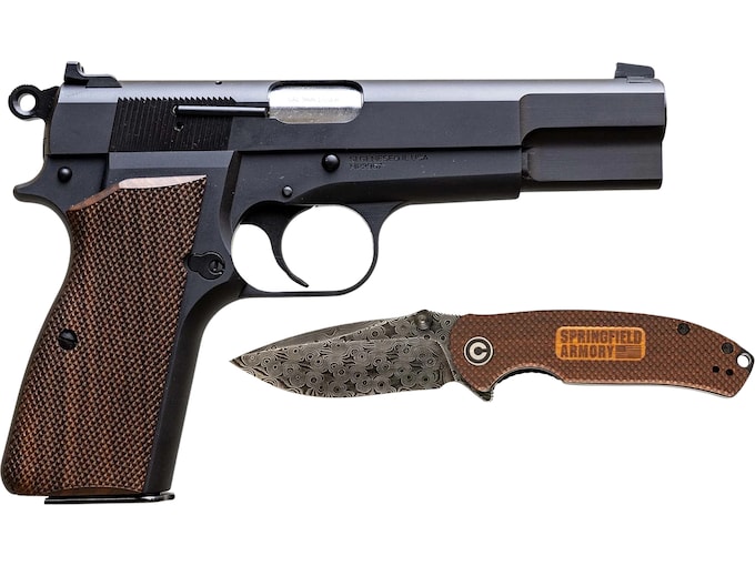 First time buying a gun online?Learn everything you need to make an informed purchase in our Definitive Guide for Buying Guns Online.Read MoreBased on one of the most prolific and popular pistols in small arms history, the Springfield Armory SA-35 gives today?s shooters a modern take on a revered classic. Featuring subtle but significant upgrades to John Moses Browning?s original P-35 design, the 9mm SA-35 captures the appeal of the ?wood and steel? era of arms making while offering the upgraded enhancements of today?s defensive pistols. Made in the U.S.A., the SA-35 features rugged forged steel parts for strength and durability, improved ergonomics and enhanced controls, a factory tuned trigger, modern sights, an improved feed ramp design, and an increased 15-round capacity.FeaturesIncludes Demascus Steel Folding Knife with Carrying CaseFactory Tuned TriggerBeveled MagwellExtended Thumb SafetyRecontoured Hammer? Made In United States of AmericaWARNING: Cancer and Reproductive Harm – www.P65Warnings.ca.gov.