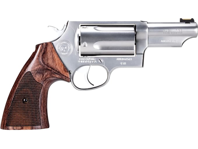 First time buying a gun online?Learn everything you need to make an informed purchase in our Definitive Guide for Buying Guns Online.Read MoreFrom the boardroom to the backwoods, the Taurus Judge Executive Grade is ready for whatever you throw at it. Taurus took the award winning, revolutionary Taurus Judge and upgraded it, making it part of a hand-fitted line of Executive Grade models. Each Judge Executive Grade is assembled by hand in a separate room by a team of specially trained gunsmiths, ensuring that the fit and finish is exquisite. The action is hand tuned, resulting in a smooth double action trigger pull, perfect for rapid shots. The single action trigger lets off with a crisp, clean break for when you need to dial up the precision a little bit. Accuracy benefits from the presentation grade wood grips, which fit comfortably in the hand while aiding recoil control.?More than a decade since it was first introduced, the legendary Taurus Judge still rules. Today, it’s available in more than a dozen models. Capable of chambering both 45 Colt and 410 shotshell, it’s the original five-shot game changer. With its combination of features and performance, the Taurus Judge Executive Grade is ready to govern over the world of .410/.45 Colt revolvers.?FeaturesStainless SteelRubber GripFiber Optic Front SightWARNING: Cancer and Reproductive Harm – www.P65Warnings.ca.gov.