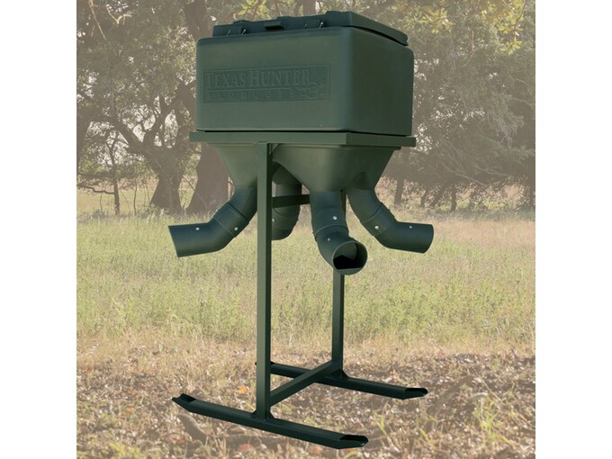 The Texas Hunter selection of large capacity protein feeders for deer includes their line of Xtreme Protein Feeders. These large-capacity gravity deer feeders are available in?600lb,?1,200lb and?2,000lb capacities. The innovative high-density, roto-molded design makes Texas Hunter Protein Feeders indestructible against the elements. The hopper won’t rust and, because the material is 26 percent cooler than steel, the protein feed will stay cool, dry and fresh ? which makes deer more likely to feed.FeaturesRoto-Molded26% Cooler than SteelLarge 6″ Feed PortsEasy to Set-up, Fill and MoveStainless Steel Hardware.Six Protein Feed StationsTwo Heavy-Duty Hinged Lids with Built-In Lid Stops for Easy FillingFood-Grade Material – Won’t Contaminate Protein or other FeedsAdvanced Feed Flow – Contour Design Provides Continuous FlowHeavy-Duty, Powder-Coated Steel Stand with Skids for portability? Made In United States of AmericaWARNING: Cancer and Reproductive Harm – www.P65Warnings.ca.gov.